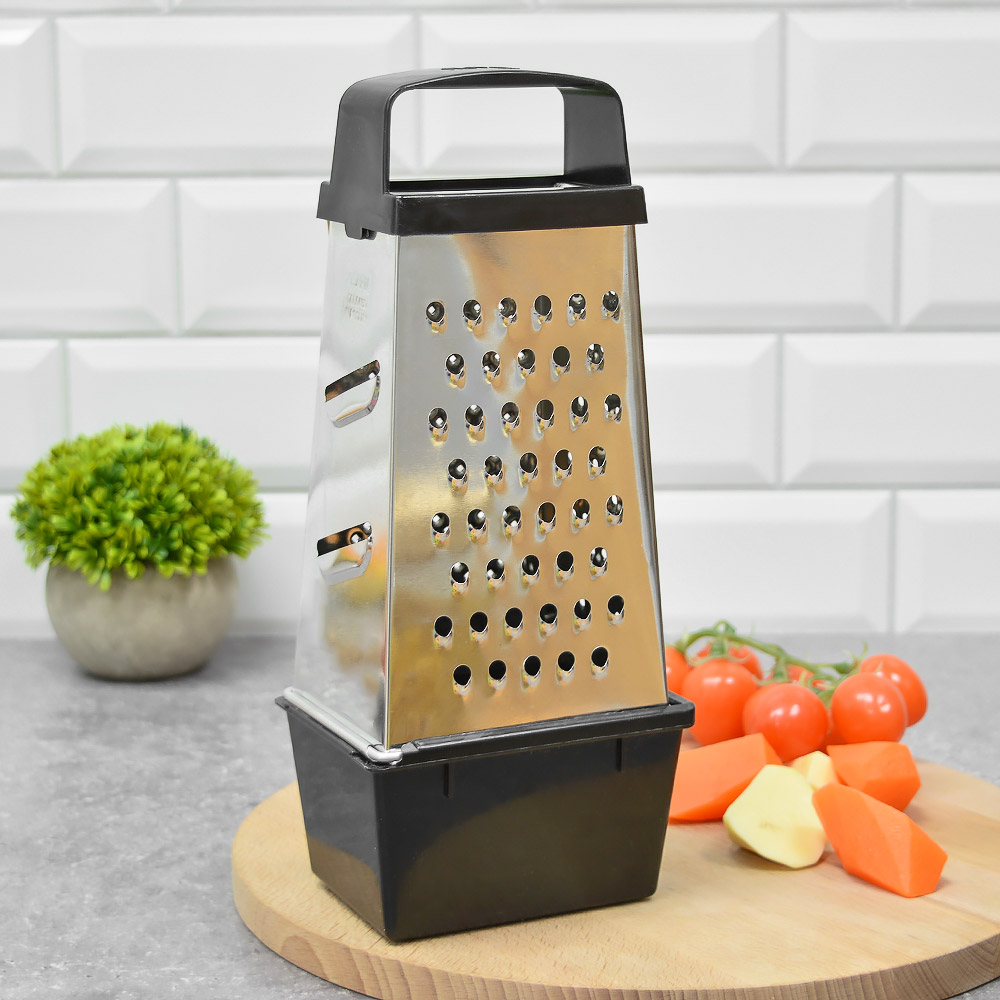 Вы можете купить оптом «Терка 4-х гранная с пластиковой ручкой и контейнером 450мл, 11*8,5*27см» производителя «Кварц» в интернет-магазине АТА по цене 134,80 рублей с быстрой доставкой по Кирову и всей России. За дополнительной информацией по товару код: 31919 обращайтесь по телефону 8 (800) 775-25-51, мы ответим на все интересующие Вас вопросы.